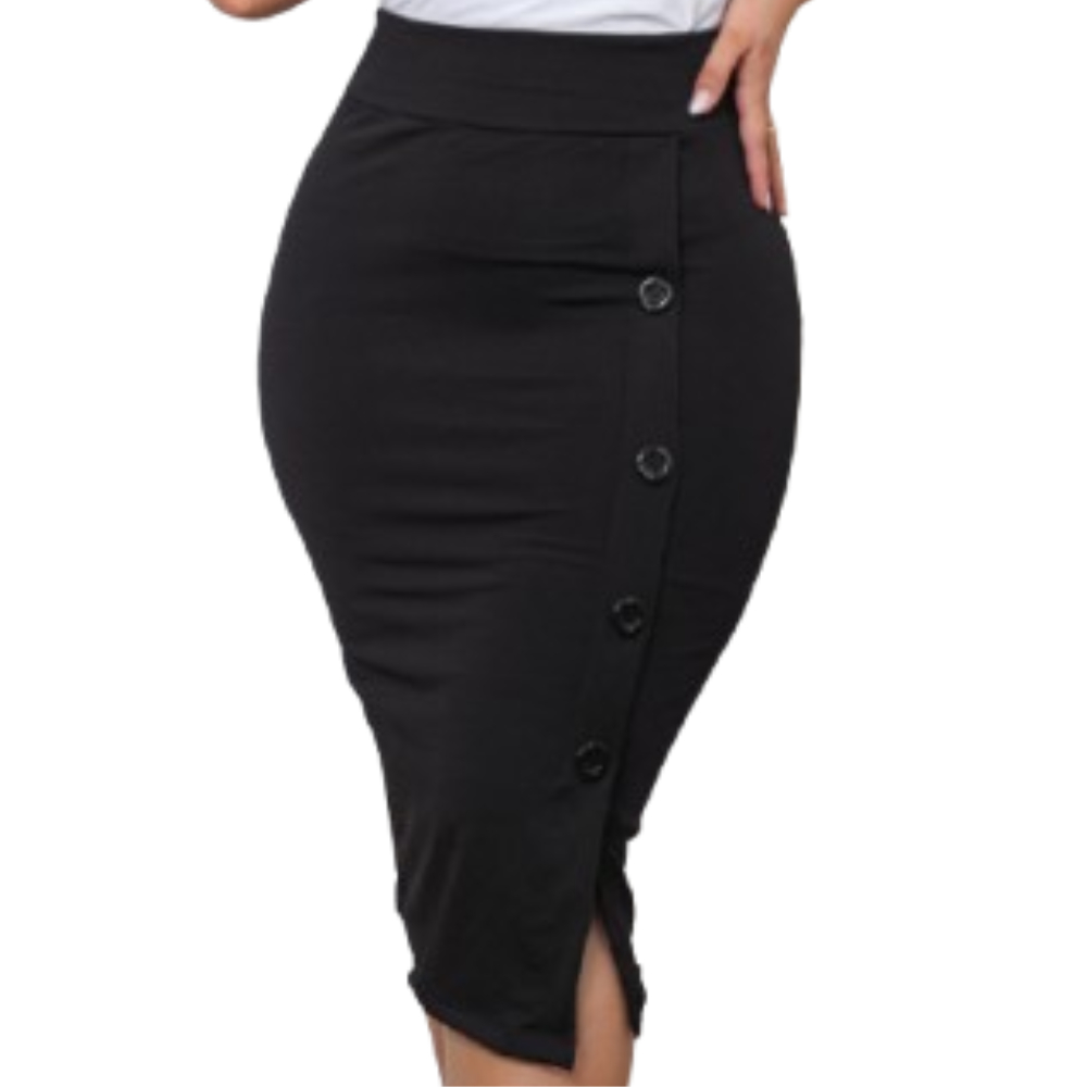 Saia Midi Botoes Social Elegante Luxo Tecido Premium Plus Size