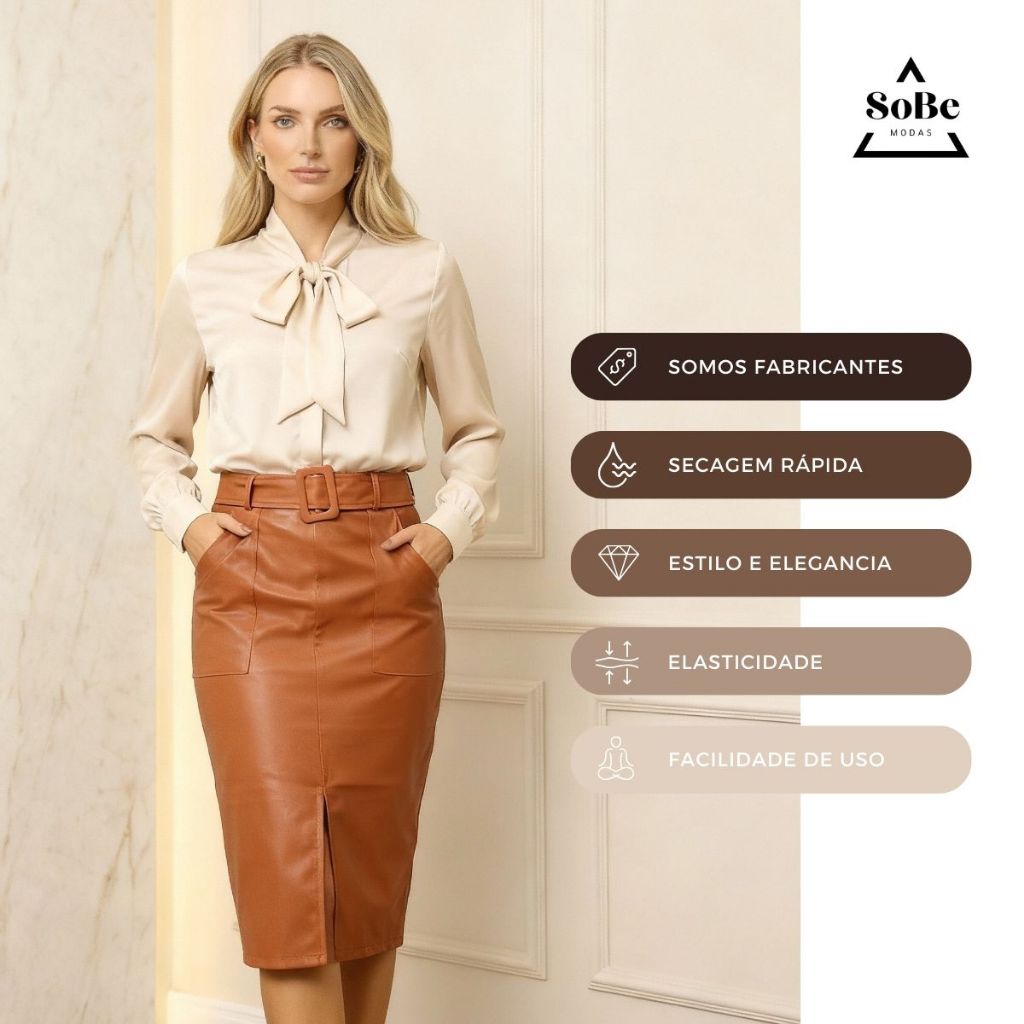 🌟 SAIA MIDI EM COURO ECOLÓGICO COM CINTO – ENVIO IMEDIATO 🌟 Saia midi confeccionada em couro ecológico (couro sintético / couro fake), com elasticidade média, que se ajusta ao corpo e oferece excelente caimento. Possui fenda frontal, garantindo mais conforto ao caminhar. 🔹 Modelo elegante, versátil e atemporal 🔹 Ideal para looks formais, sociais, executivos ou casuais ✨ DETALHES DO PRODUTO: ✔ Fechamento em zíper lateral ✔ 2 bolsos frontais grandes e funcionais (cabe celular) ✔ Acompanha cinto removível com fivela forrada na mesma cor da saia ✔ Não marca e não fica transparente ✔ Confortável e moderna 👗 INDICAÇÃO DE USO: • Igreja, culto, eventos, convenções e congressos • Trabalho corporativo / moda executiva • Secretaria, professora, recepcionista • Dia a dia – combine com tênis ou salto 📏 TABELA DE MEDIDAS (EM CM): 🔸 P – Cintura: 76 | Quadril: 90 | Comprimento: 69 🔸 M – Cintura: 80 | Quadril: 94 | Comprimento: 70 🔸 G – Cintura: 84 | Quadril: 98 | Comprimento: 71 🔸 GG – Cintura: 88 | Quadril: 104 | Comprimento: 72 🔸 EXG – Cintura: 92 | Quadril: 108 | Comprimento: 76 📌 Dica: confira a tabela antes de comprar. 🚚 ENVIO IMEDIATO 🏭 SOMOS FABRICANTES 🕐 Atendimento: segunda a sexta até às 13h 🛒 Garanta já a sua! Produto de alta qualidade e excelente custo-benefício.