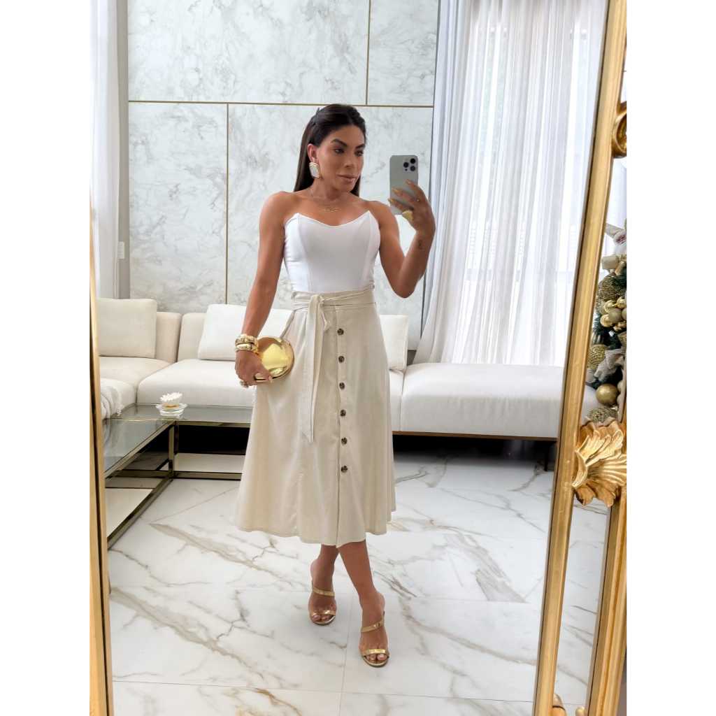 Saia Midi Femenina ideal e comforto Casual en linho Moda elegante Estilo conforto e elegancia. tem varias cores disponivel tamanhos M G GG M. 38 G. 40 GG..42