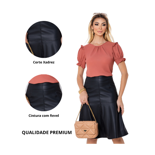Saia Midi Feminina Evase Godê Couro Fake Moda Evangélica Cintura com Revel Elegante Moderno Inverno