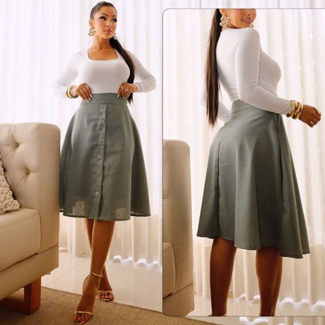| Saia Midi Feminina Evasê Linho Moda Evangélica Tecido Linho Cintura... este produto | R$ 49,99 | 50% | 4.9/5 | 6 |