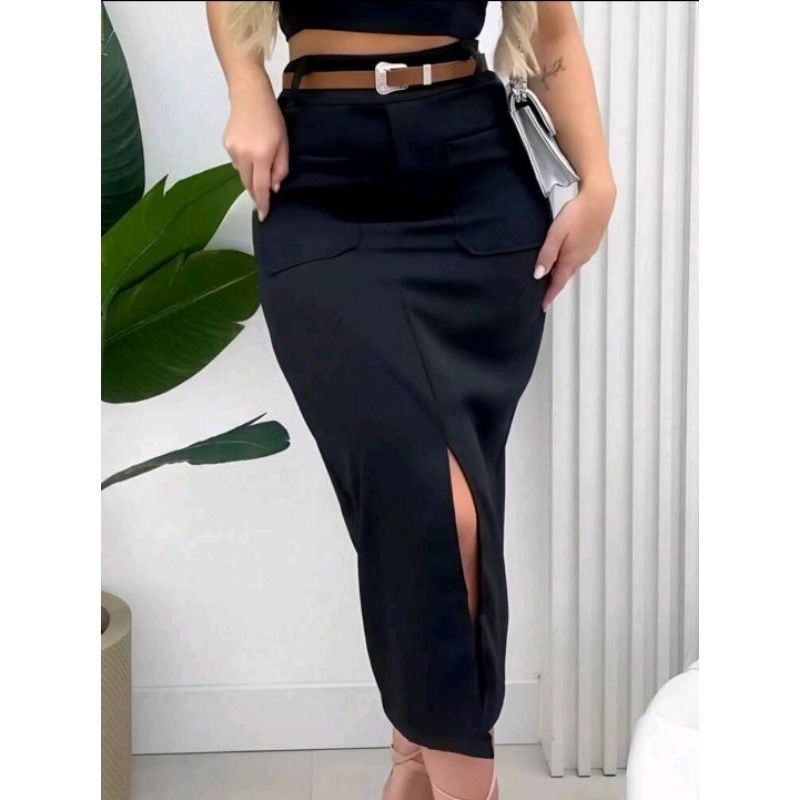 Saia MIDI Feminino Social Com CINTO Cintura Alta Evangelica P ao GG