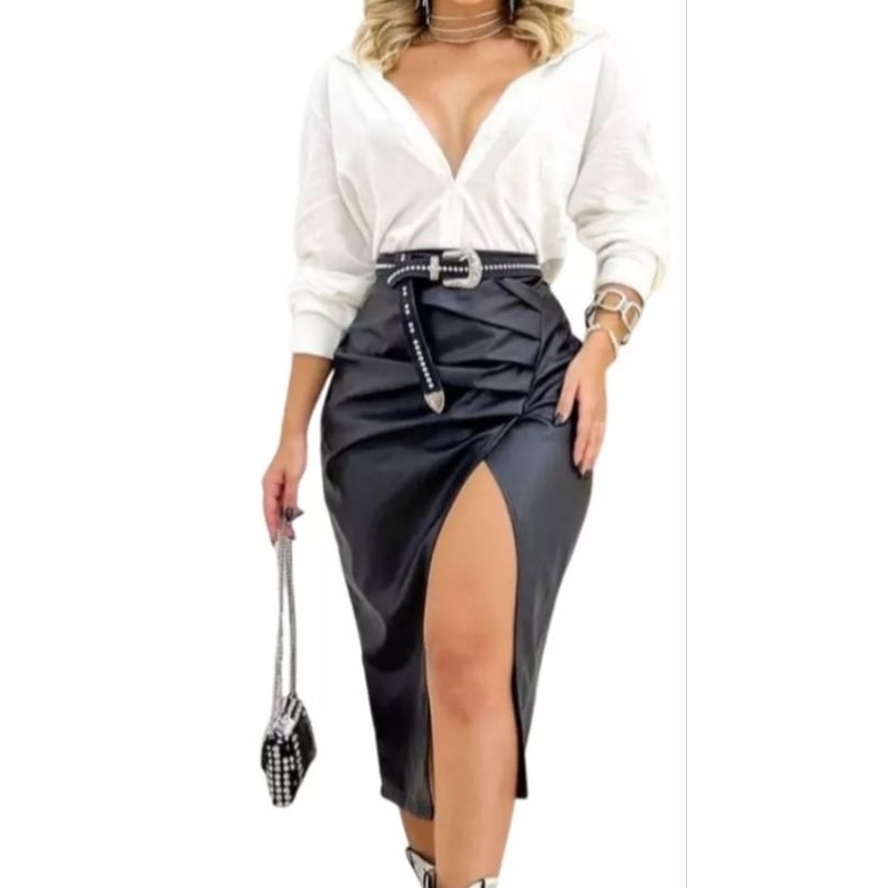 Saia De fenda Drapeada cintura Alta Tecido Cirre MEDIDAS M 36 CINTURA 62 cm QUADRIL 82 cm COMPRIMENTO 66 cm G 38/40 CINTURA 66 cm QUADRIL 84 cm COMPRIMENTO 67 cm GG 42 CINTURA 70 QUADRIL 90 COMPRIMENTO 67