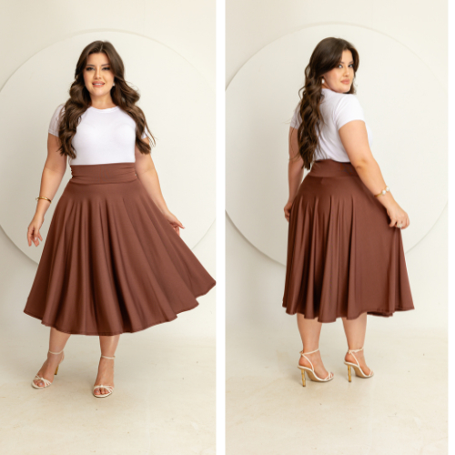 Saia Midi P ao Plus Size Várias Cores Lisas Moda Feminina Modesta