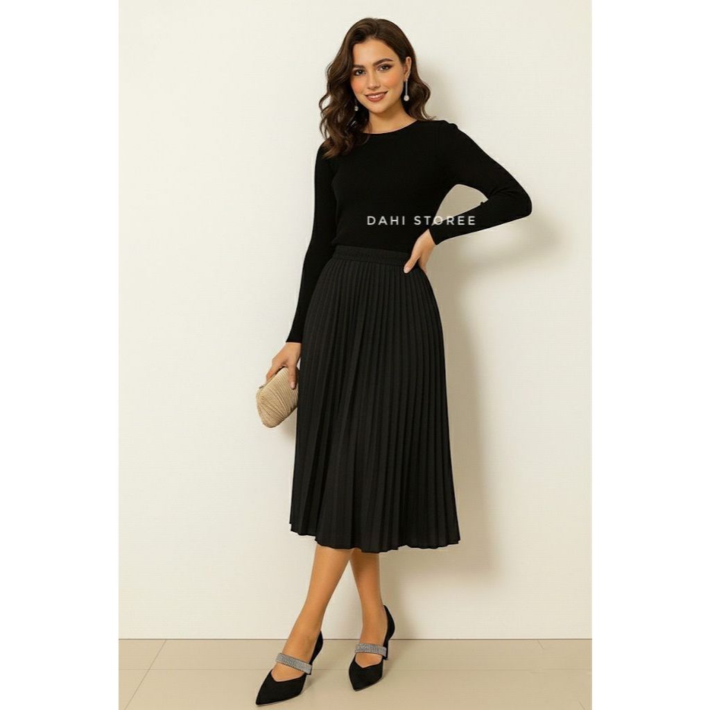 Saia midi plissada feminina Crepe com forro elasticidade na cintura moda evangélica