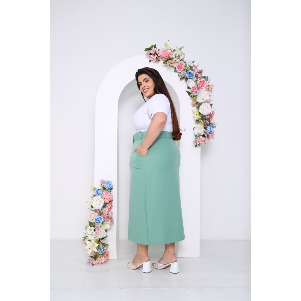 SAIA MIDI PLUS SIZE ALFAIATARIA MODA EVANGELICA REF 051