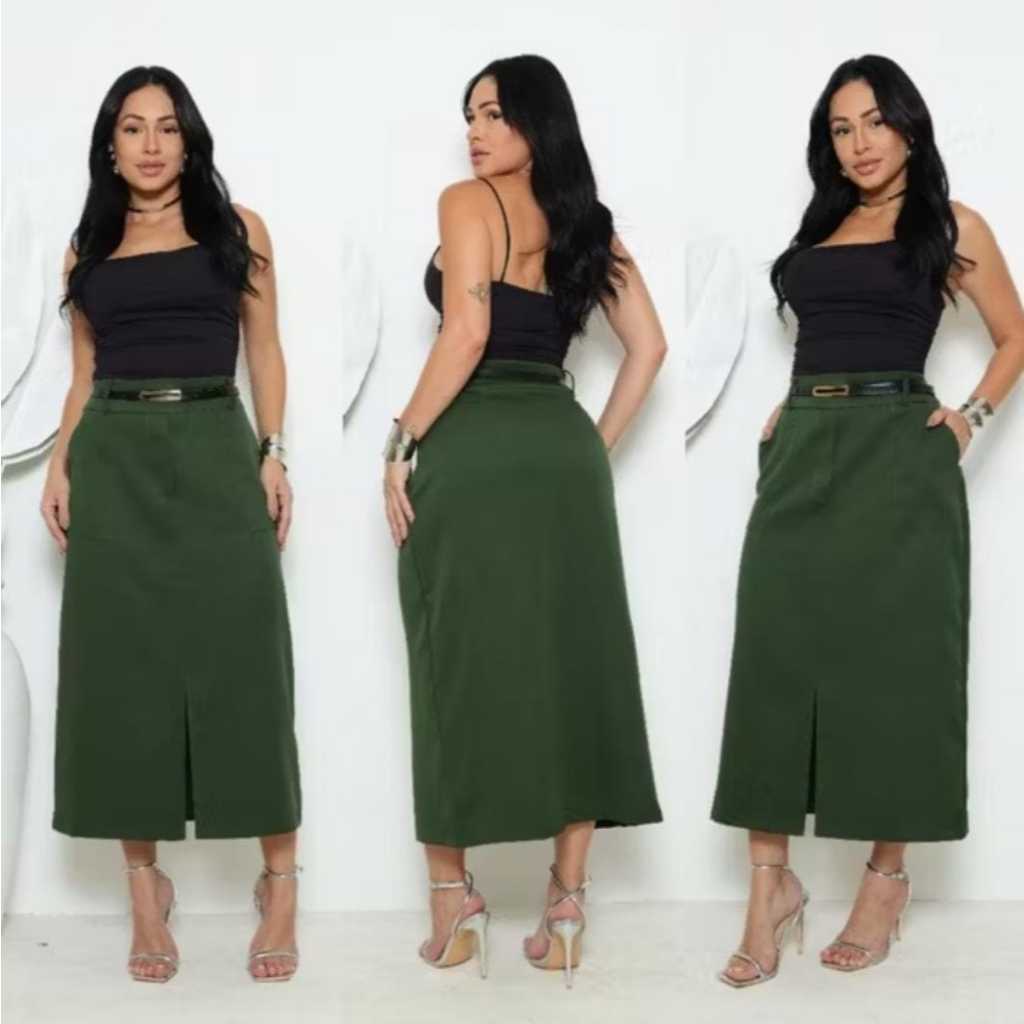 Saia Midi Tendencia Femenina Com Bolso Alfaitaria