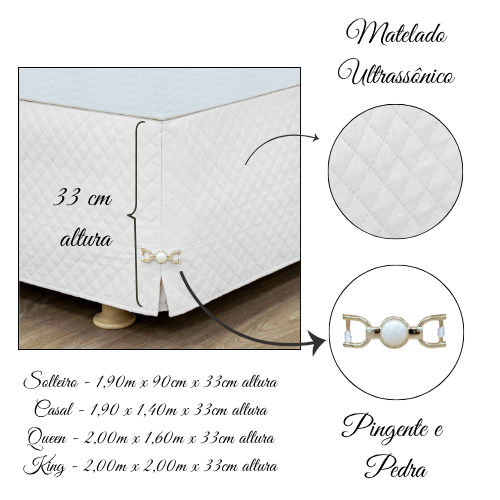 Saia para cama Box Solteiro/Casal/Queen/King Matelada Ultrassônico c/ Pingente e Pedra