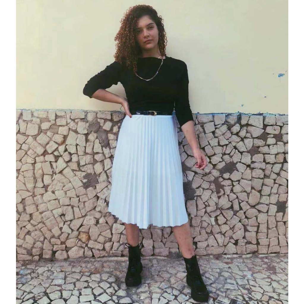 Saia Plissada Midi Forrada Lisa-080