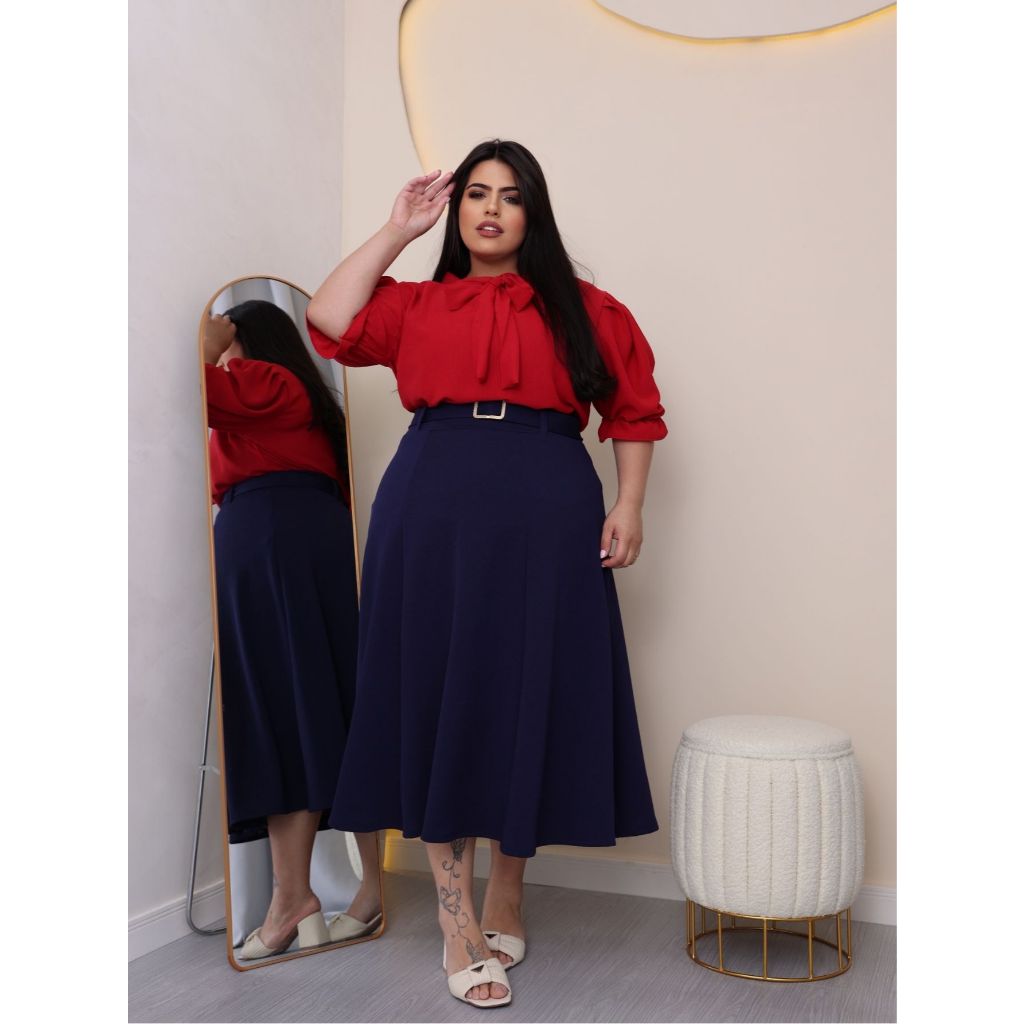 SAIA PLUS SIZE MIDI COM CINTO EM MALHA CREPE MODA EVANGELICA E FEMENINO