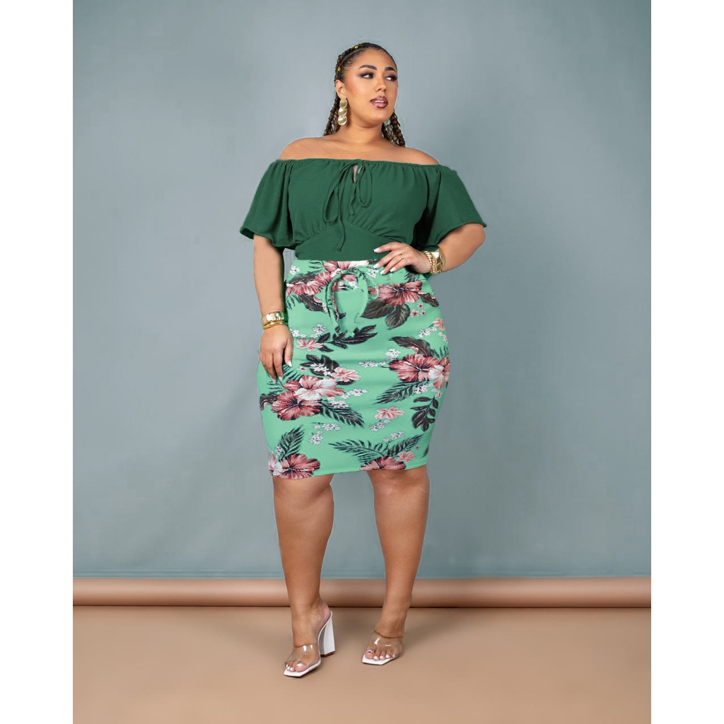 saia plus tamanho grande possui bolso saia midi