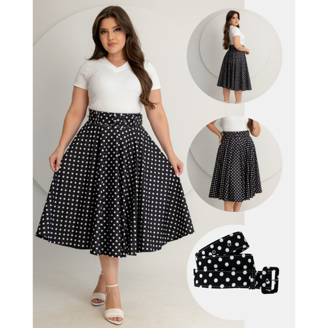 Saia Poá Com Cinto - P ao GG - Temática anos 60.