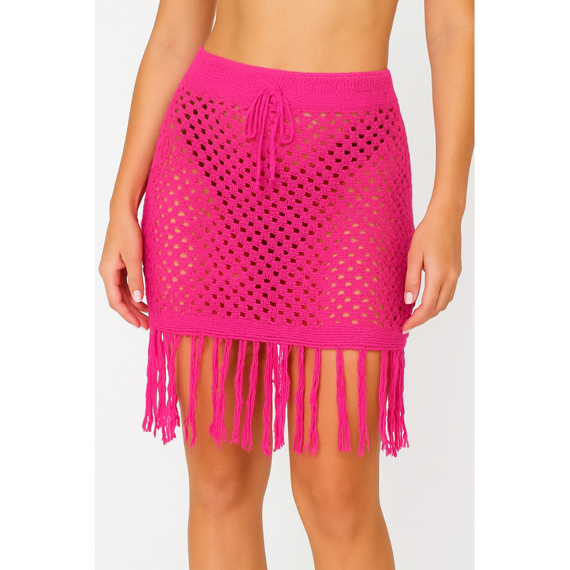 Saia Saída De Praia Feminina Tricô Com Franjas Saia De Praia Verão