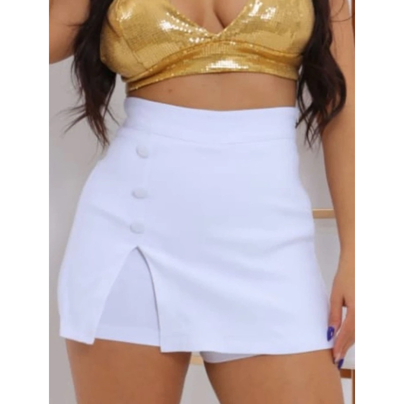 Saia short Bengaline 3 BOTÕES fenda lateral cintura alta promoção