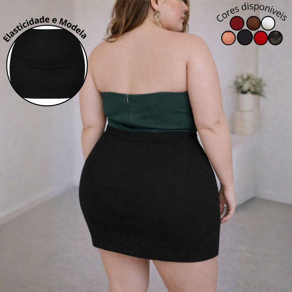 Saia Short Plus Size Bengaline Cintura Alta Modeladora Moda Feminina Confortável Lançamento