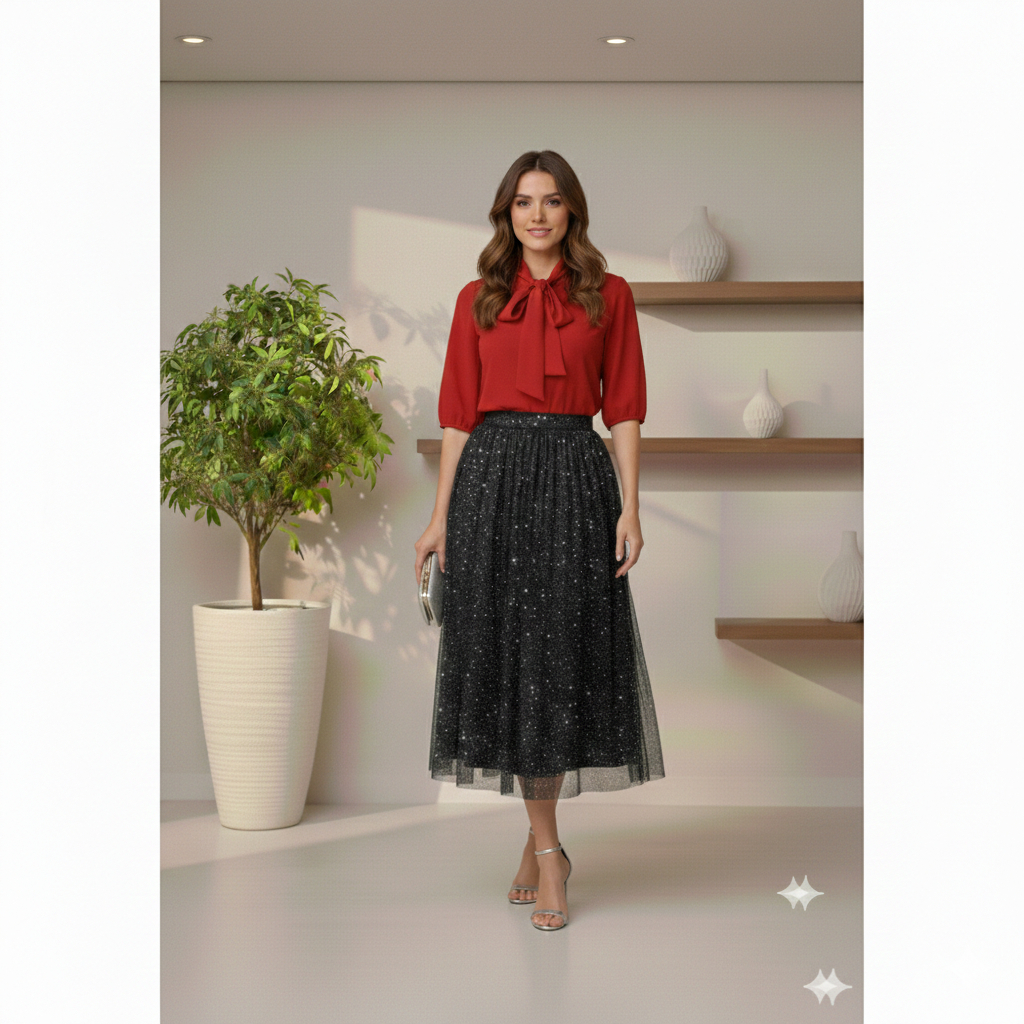 🚀 Entrega Relâmpago – Chega Rápido Mesmo! Envio Turbo: Pedidos confirmados até as 11h são despachados no mesmo dia. Saia Midi em Tule com Brilho – Elegância sem Apertar! Você já comprou uma saia linda, mas que pinicava ou apertava a cintura? Com a nossa Saia Midi em Tule, isso não acontece! Unimos o visual de "princesa moderna" com o conforto de uma peça leve e fluida. ✨ Por que você vai amar essa saia? Cós Confort Plus: Elástico macio que se adapta à sua cintura (do 36 ao 44) sem marcar e sem enrolar. Forro Soft Touch: Possui um forro interno sedoso que garante zero transparência e um toque suave na pele. Leveza de Nuvem: O tule é de alta qualidade, proporcionando movimento e um brilho sutil que não solta na mão. Sabemos que você tem pressa para montar seu look. Por isso, nossa logística é prioridade: Pronta Entrega: Produto em estoque real no Brasil. Nada de esperas intermináveis! Embalagem com Carinho: Sua saia chega cheirosa e bem dobrada, pronta para brilhar. 📐 Detalhes Técnicos Tecido: Tule Premium com partículas de brilho. Comprimento: Midi clássico (elegância para qualquer altura). Tamanho: M Veste do 38 G veste 44 com extremo conforto Cor: Bordô/Vinho . ❓ Perguntas Frequentes É transparente? De jeito nenhum. O forro interno é denso e garante total segurança. Chega em quantos dias? Postamos em menos de 24h úteis para que o sistema da Shopee entregue no menor tempo possível para sua região. Dica de Estilo: Use com salto para um evento formal ou com tênis e jaqueta jeans para um look "comfy" e super estiloso!