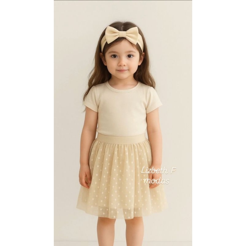 👗 Saia Tule Poá Infantil – Moda Evangélica Estilo: Evangélico / Romântico Tecido: Tule com forro macio para conforto Acabamento: Renda com detalhes sortidos em poá (bolinhas, maiores ou estreladas) Cintura: Elástico suave e confortável Não vem com assessórios somente a saia 📏 Tamanhos disponíveis: M (3/4 anos) Cintura: 43 cm Comprimento: 33 cm G (4/5 anos) Cintura: 46 cm Comprimento: 33 cm Envio imediato