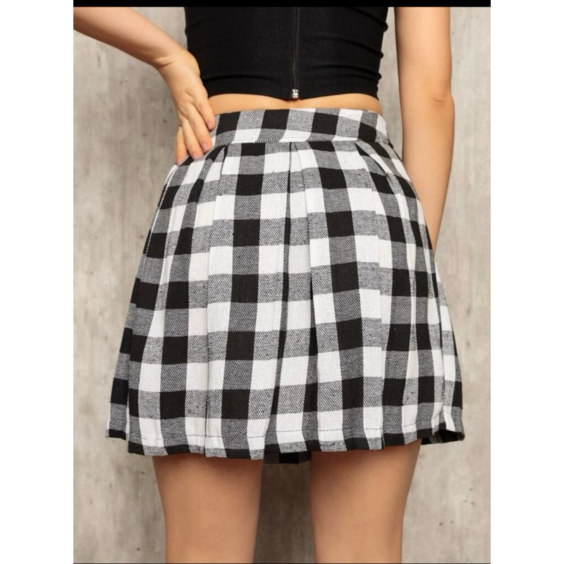 Saia Xadrez Feminina Rodada Com Zíper Na lateral