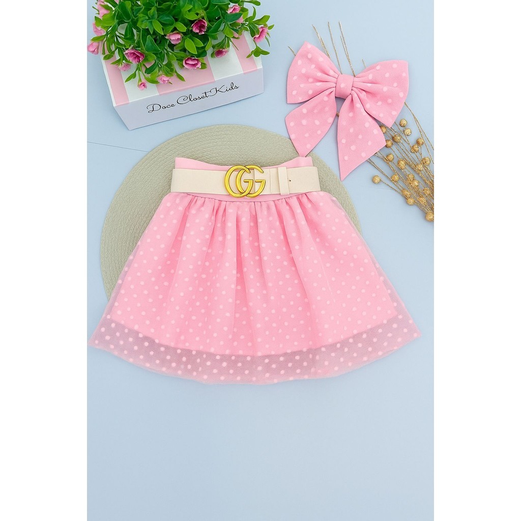 Mais novidades chegando Lindas saias Tule forrada, com elástico na cintura para sua pequena arrasar OBS a renda pode ser em poá (bolinhas, bolas maiores) ou estrelinhas ( todos modelos são lindos ) ATENÇÃO: acessorios como Cinto, Laço, e itens da foto ( NÃO ACOMPANHAM A SAIA) O que você recebe: SOMENTE UMA SAIA TABELA DE MEDIDAS TAMANHO P - veste 1/2 anos LARGURA NA CINTURA: 32 cm COMPRIMENTO: 28 cm TAMANHO M- veste 3/4 anos LARGURA NA CINTURA: 34 cm COMPRIMENTO: 32 cm TAMANHO G - veste 5/6 anos LARGURA NA CINTURA: 36 cm COMPRIMENTO: 36 cm TAMANHO GG -veste 7/8 anos LARGURA NA CINTURA: 38 cm COMPRIMENTO: 39 cm TAMANHO XG - veste 9/10 anos LARGURA NA CINTURA: 40 cm COMPRIMENTO: 42 cm Podendo sofrer alterações de 2 cm devido a costura. Já curti nossa página e apoie uma mamãe empreendedora qualquer dúvida por favor nos chame no chat