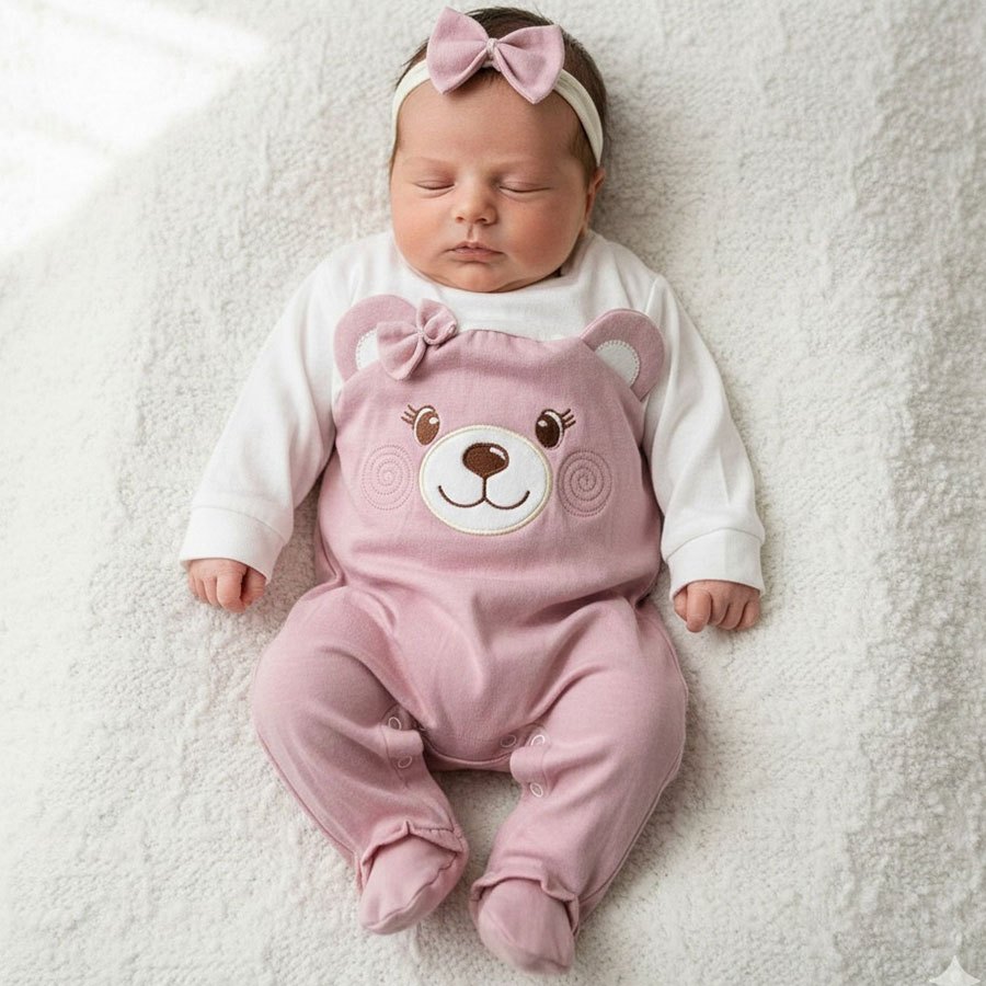 Saida de Maternidade Bebê Menina Kids Ursinha Jade Rosê Malha Algodão Tam P
