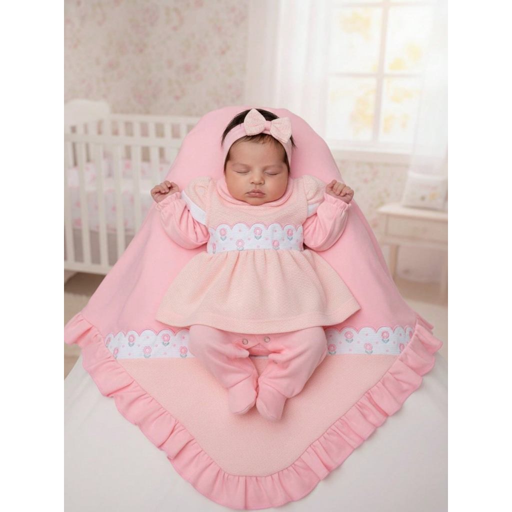 Saída de Maternidade Bebê Menina KIT 4 Peças Antialérgico - 100% algodão RN
