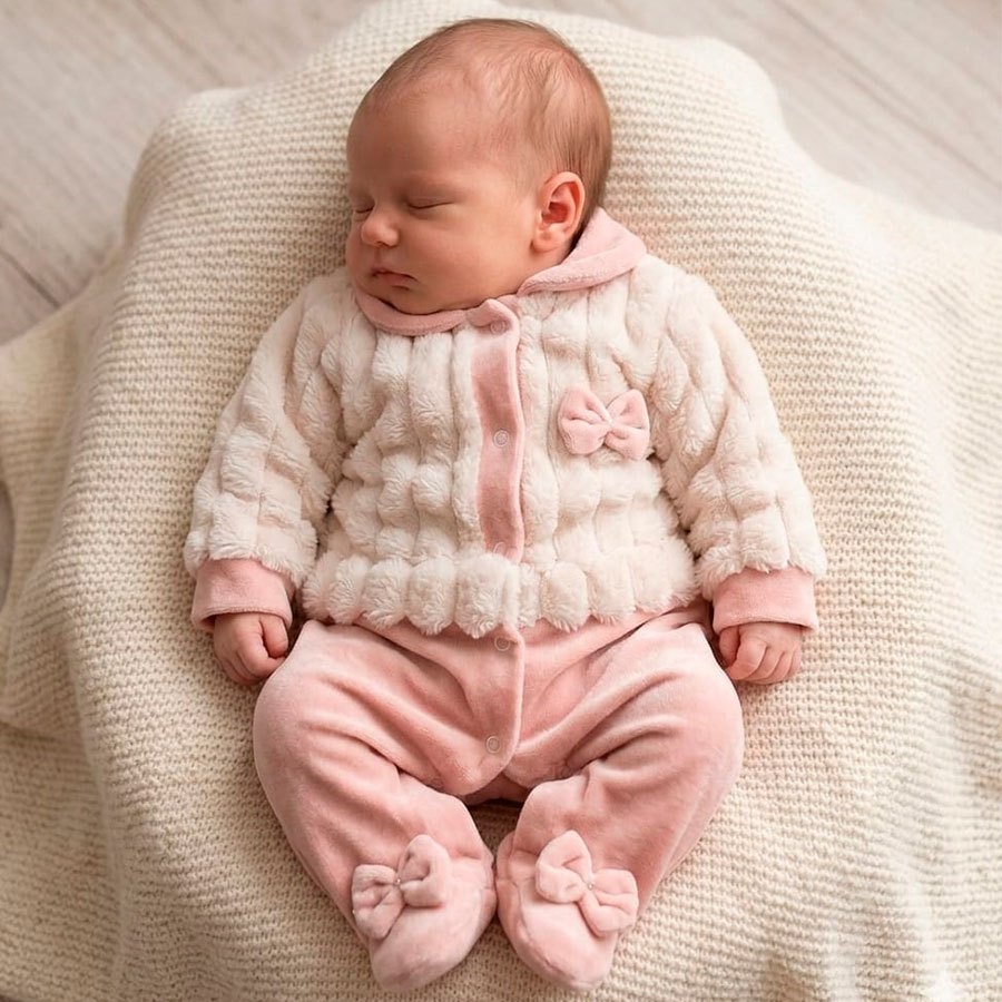 Saida de Maternidade Bebê Menina Plush Inverno Sintonia Alice Rosê com Manta