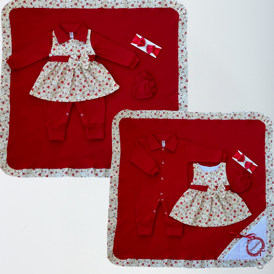 Saída de Maternidade Feminina Vermelha Floral de Algodão