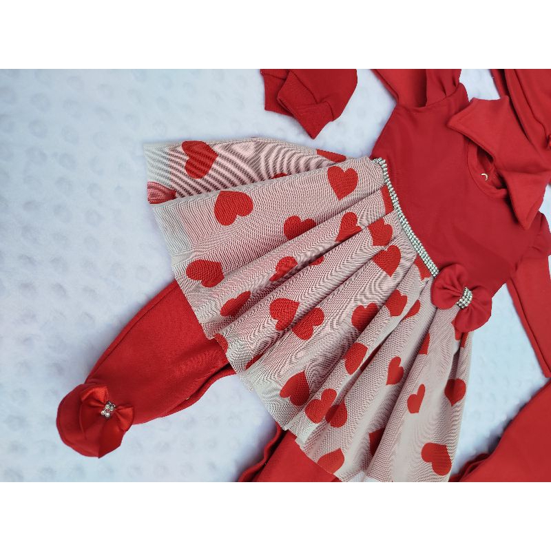 Saída de Maternidade Menina Vermelha Tule Coração