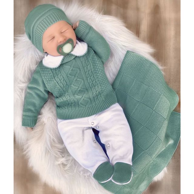 Saída de maternidade tricô verde oliva Vitor
