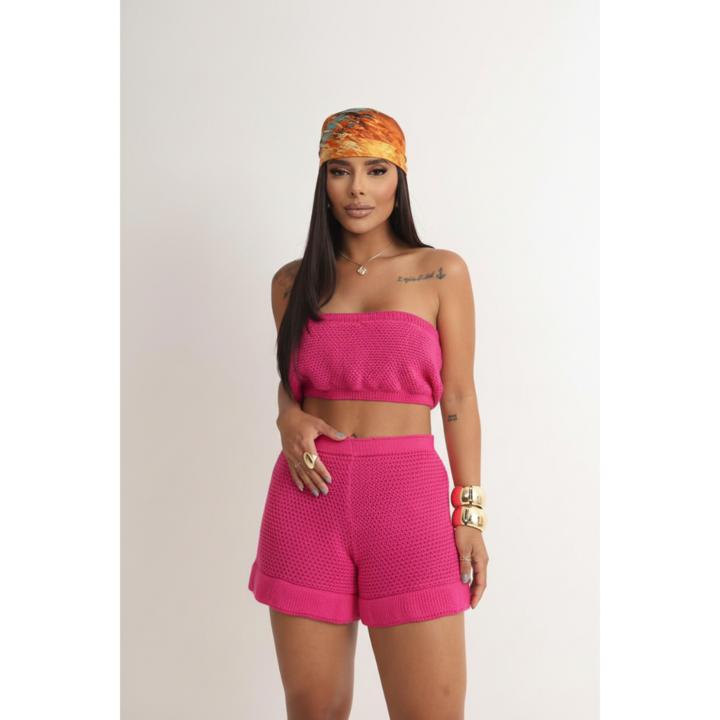 Medidas: SHORT Cintura: 30 a 50 cm Comprimento: 33 cm TOP Busto: 37 a 47 cm Comprimento: 19 cm Observação: As medidas acima podem apresentar variação de até 3 cm devido à elasticidade do tricô. INTRUÇÕES DE LAVAGEM: O Tricot é uma peça delicada. Siga as instruções para aumentar sua durabilidade. - Lavagem a mão; - Não alvejar; - Não usar secadoras; - Não passar à ferro e/ou não vaporizar; - Não limpar a seco; - Secagem à sombra; ** As cores dos produtos podem sofrer variações devido ao lote da matéria prima usada em sua produção