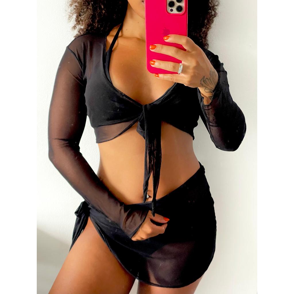 👙💦Saída de praia conjunto cropped e saia com amarrações em tule👙💦 Tamanho único Disponível em: Preto e Branco Verão 2024 sua avaliação positiva é muito importante para a nossa loja 😊