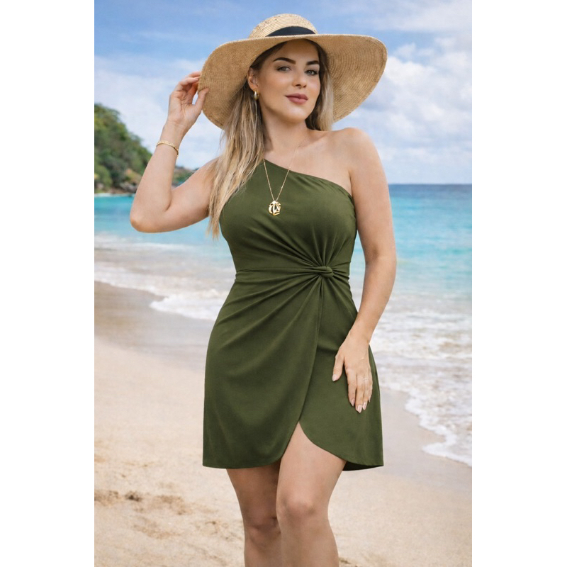 Saída de Praia Feminina Um Ombro Só com Nó e Fenda – Poliamida | Amazônia