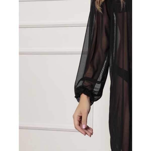 saida de praia liso manga longa tipo camisa tecido tule sem botao