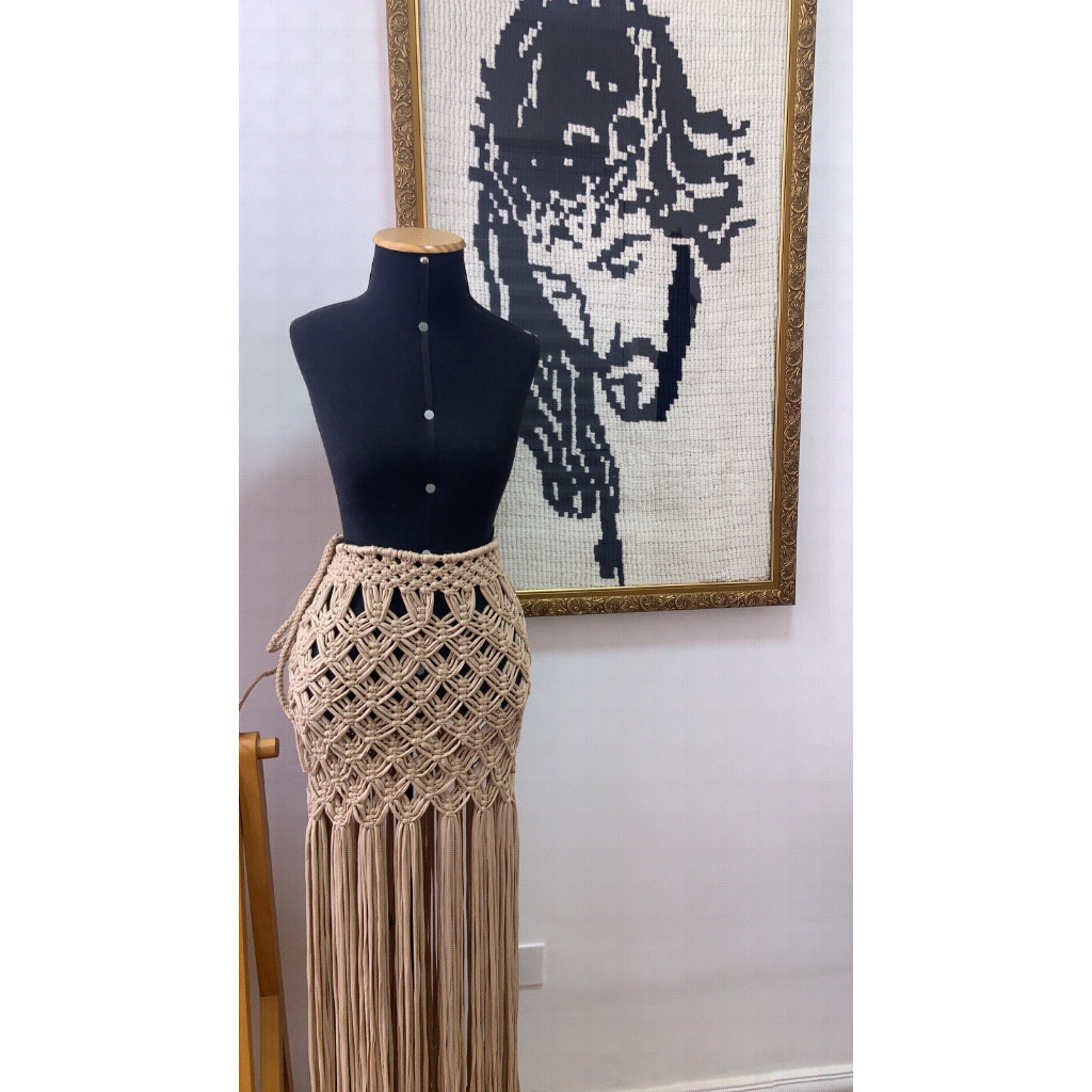A saída de praia Maresia é feita com fio de malha extra premium em Macramê Obs. Após efetuar seu pedido enviamos as informações caso você queira sob medida , caso as informações não seja enviadas a saia irá no tamanho selecionado .