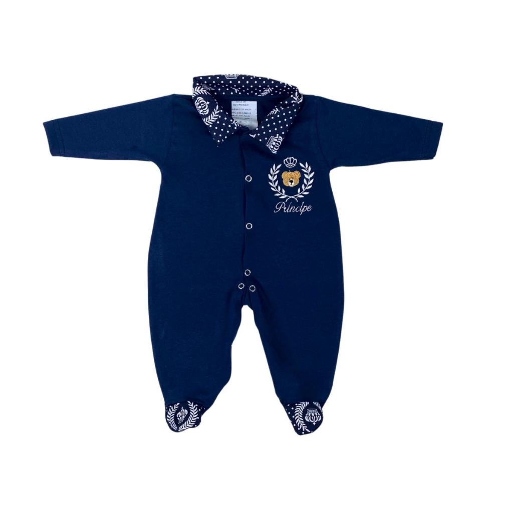 Saída Maternidade Bebê Menino Urso Príncipe 04 Peças 100% Algodão