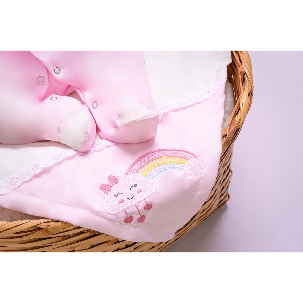 Saída Maternidade Menina Nuvem 04 Peças Arco Iris Roupa de Bebê Menina