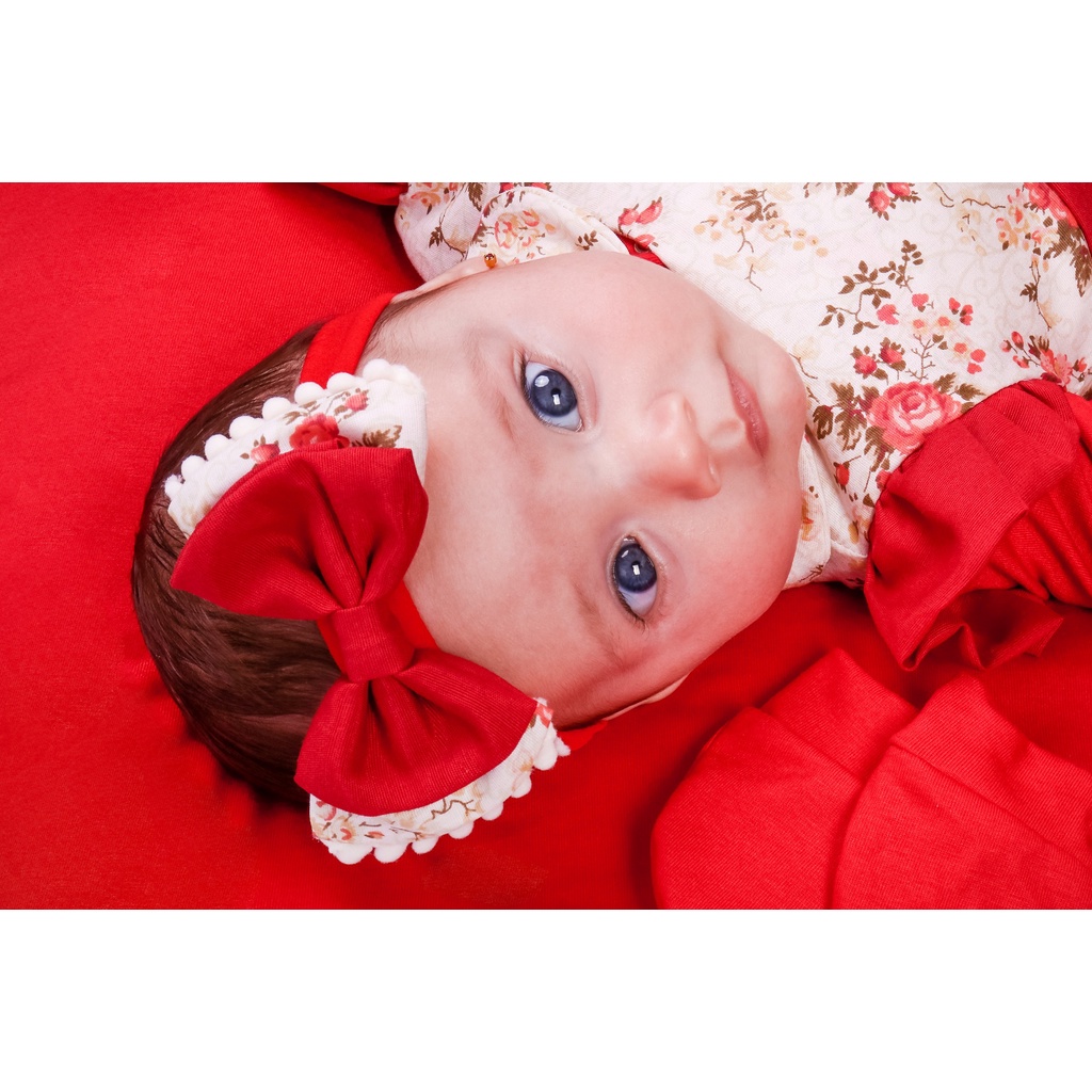 Saída Maternidade Menina Vermelha Floral 05 peças Roupas de Bebê Menina