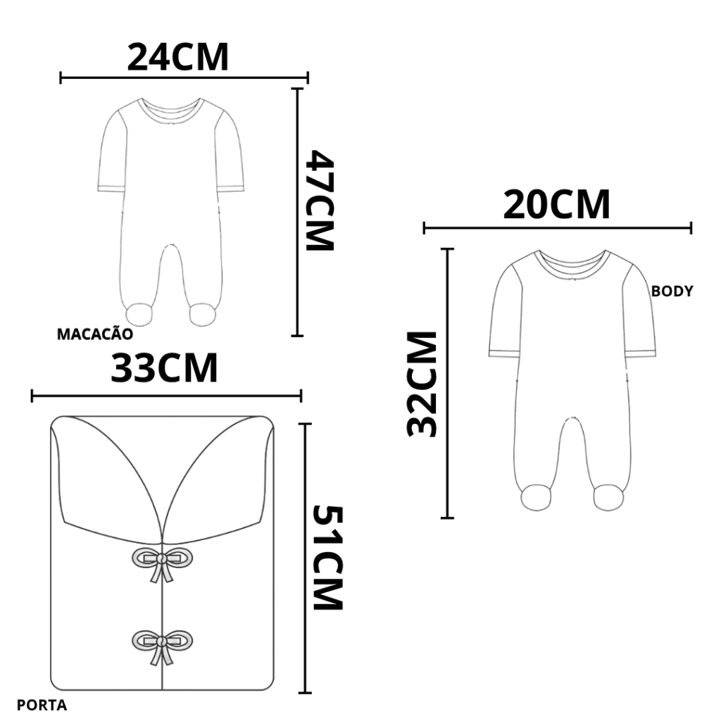 BENEFÍCIOS: • Saída de maternidade delicada e charmosa, ideal para o primeiro dia do bebê. • Kit completo com macacão, body, naninha e porta bebê. • Produzido em malha e suedine 100% algodão, macio e antialérgico. • Conforto e praticidade pensados para a pele sensível do recém-nascido. • Excelente opção para a mala maternidade ou para presentear. 🏷️ Marca: SR.ENXOVAL 🛠️ Material: Malha + Suedine 100% Algodão 📏 MEDIDAS: • Macacão: 47 cm dos ombros aos pés (0–2 meses) • Porta bebê: tamanho RN (0–2 meses) • Body e Naninha: tamanho RN ℹ️ IMPORTANTE: Envio imediato ✅ Compra Segura Com Garantia Shopee ✅ Somos Vendedores Indicados Pela Shopee ✅