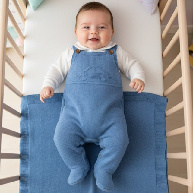 Saída Maternidade Menino Tricô Carro Anjinho