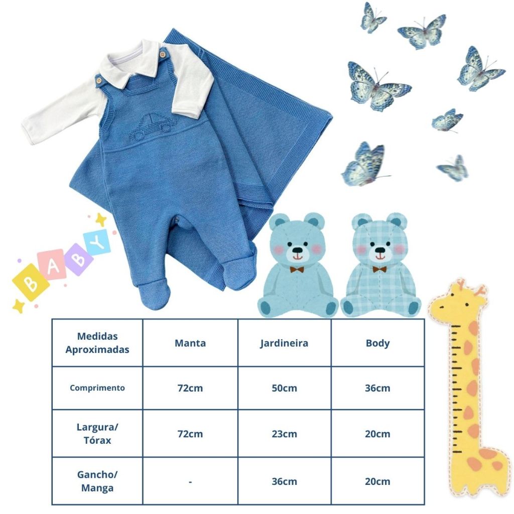 Conjunto de Saída de Maternidade Anjinho - O Primeiro Encontro Perfeito Detalhes do Produto: Prepare-se para um dos momentos mais especiais da sua vida com o nosso elegante Conjunto de Saída de Maternidade. A escolha perfeita para vestir seu bebê com conforto e estilo no primeiro passeio para casa. Peças Incluídas: Body (100% Algodão), Jardineira e Manta. Material Confeccionado em poliéster 70% e Acrílico 30%, oferecendo suavidade e conforto para a pele delicada do recém-nascido. Características Principais: Material: Tricô, hipoalergênico e respirável, ideal para a pele sensível do recém-nascido. Design: Disponível nas cores Azul, Marrom e Verde. Tamanhos: RN (Recém-nascido) até 2 meses. Segurança: Todos os materiais são certificados e livres de substâncias tóxicas. Conforto e Maciez: Feito com materiais de alta qualidade, proporcionando um toque suave e confortável. Praticidade: Fácil de vestir e trocar. Estilo: Design elegante e moderno, perfeito para fotos e memórias especiais. Funcionalidade: Ideal para todas as estações, mantendo seu bebê aquecido e confortável. Sugestões de Uso: Este conjunto é perfeito não apenas para a saída da maternidade, mas também para visitas especiais, sessões de fotos e qualquer ocasião em que você queira que seu bebê esteja especialmente encantador e confortável. Por que Escolher Nossa Saída de Maternidade? Escolha nossa Saída de Maternidade para garantir que os primeiros momentos fora do hospital sejam repletos de carinho, conforto e estilo. Cada detalhe foi cuidadosamente pensado para atender às necessidades dos recém-nascidos e proporcionar tranquilidade aos pais. Adquira agora e torne esse momento inesquecível! Entrega rápida! Todos os pedidos acompanham Nota Fiscal Eletrônica (NFe). Produzido no Brasil. As cores podem sofrer alterações de tonalidade. Produtos enviados em até 01 dia útil. Estamos a disposição. Equipe Anjinho