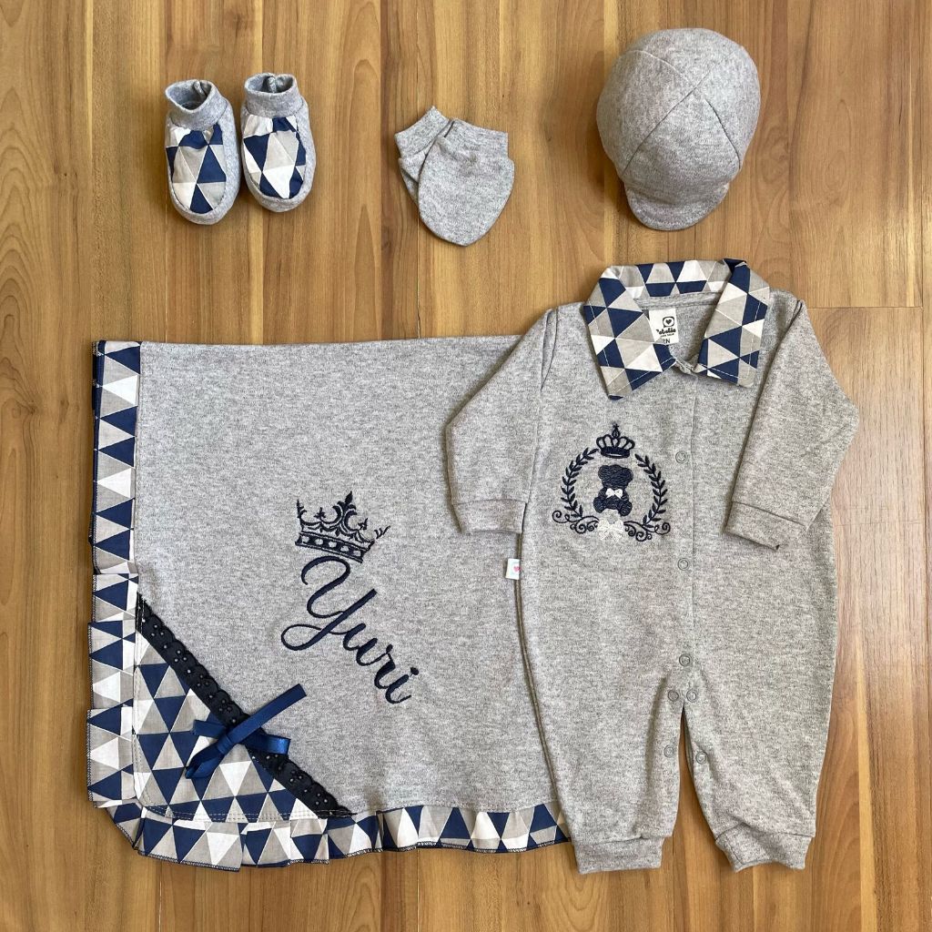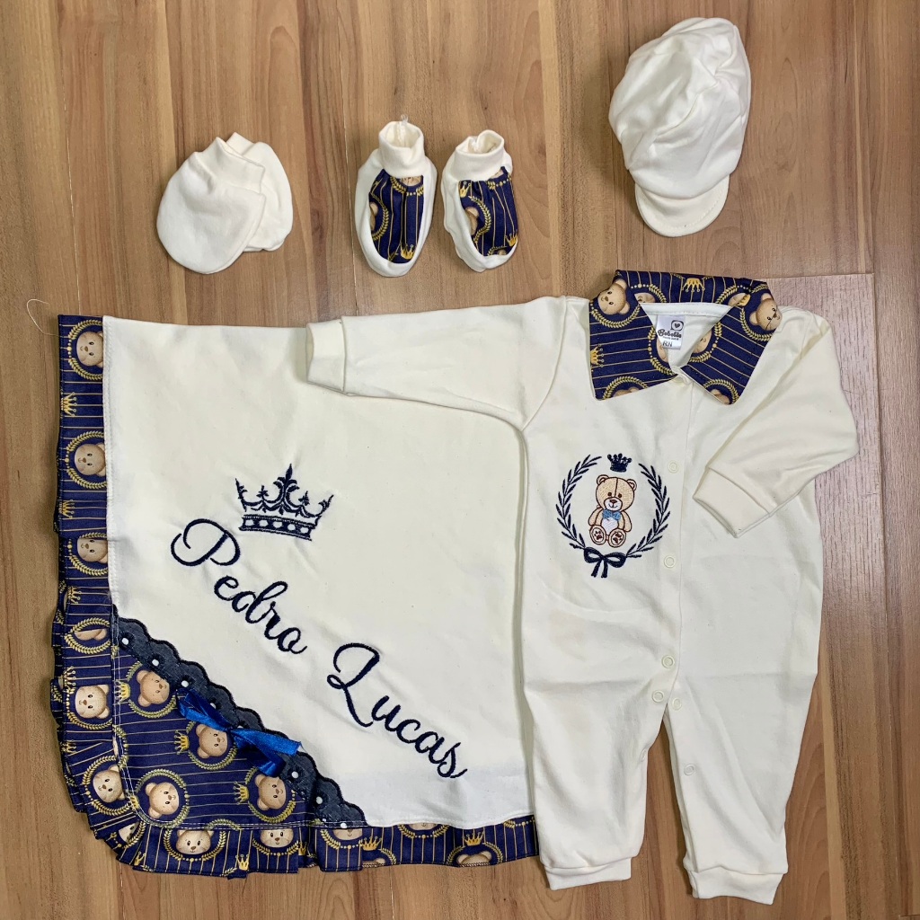 Saída Maternidade Personalizada Para Menino 100% Algodão 5 Peças