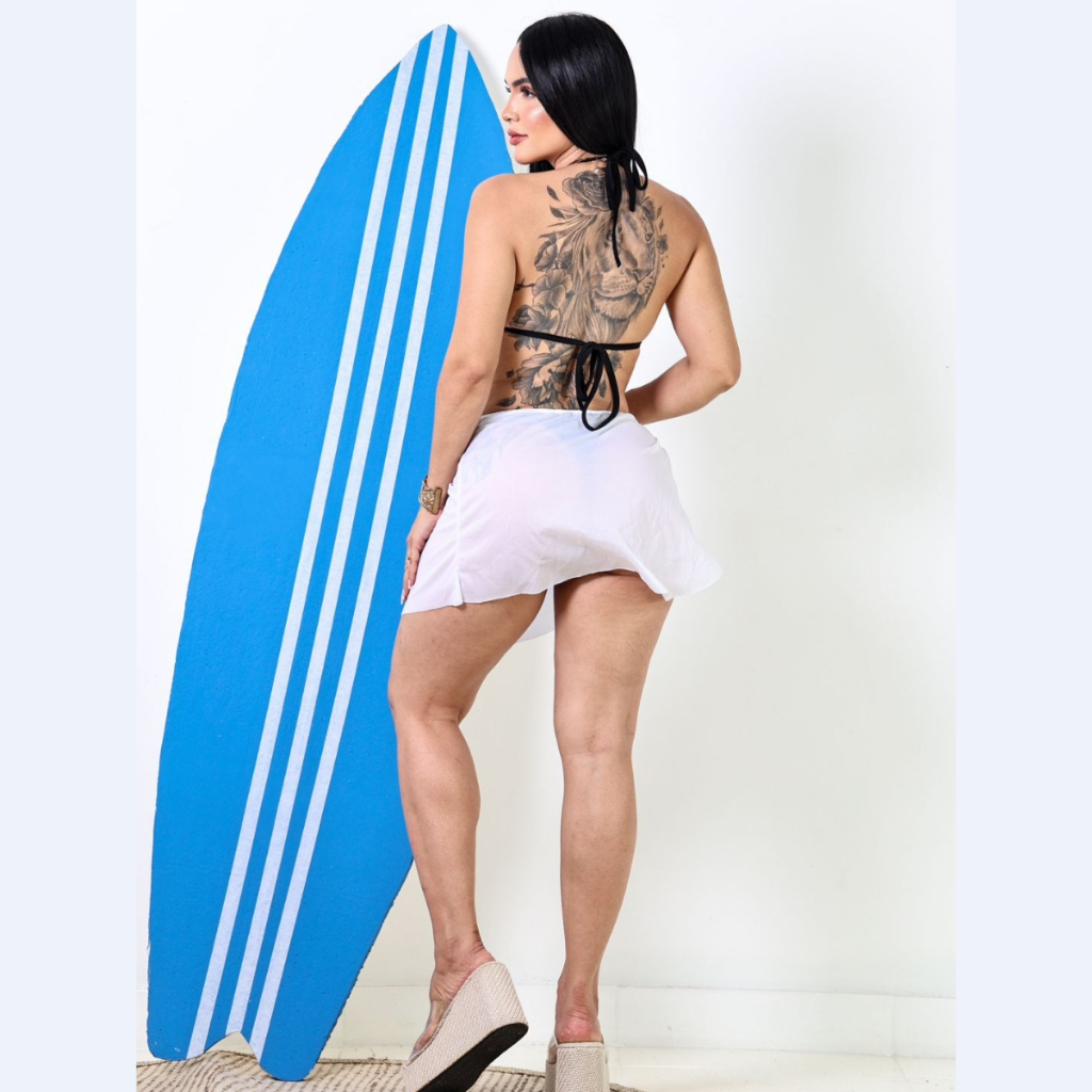 DESCRIÇÃO LONGA COM SEO: A Saída de Praia Saia em Tule com Argola Dourada Sol o Coração foi criada para mulheres que buscam leveza, estilo e um toque de luxo no visual. Inspirada no look de uma deusa grega, ela possui transparência elegante, caimento fluido e uma fenda estratégica que realça o movimento do corpo. O detalhe dourado em formato de sol traz brilho e eleva qualquer produção de moda praia. Feita em tule macio e confortável, é perfeita para usar sobre biquínis, maiôs e composições de verão. Combina com acessórios dourados, sandálias minimalistas e propostas do casual ao sofisticado para praia, piscina e viagens. TABELA DE MEDIDAS: Tamanho: veste do 36 ao 42 Circunferência da Cintura - 64 cm Comprimento é de - 36 cm Quadril não se aplica devido a Fenda aberta Perguntas e Respostas: P: O tule é transparente? R: Sim, é uma transparência elegante própria de saída de praia. P: A argola dourada pesa? R: Não, é leve e confortável, pensada para uso prolongado. P: Serve para quais tamanhos? R: A modelagem veste conforme tabela acima, com leve elasticidade. P: Pode molhar? R: Pode ter contato leve com água, mas não é peça para mergulho. P: Como lavar? R: Lavar à mão, com sabão neutro, sem esfregar. MODELO: Saia saída de praia tule, saída tule com fenda, saia transparente praia, saída curta tule dourado, saia grega praia, saída deusa, saia sol dourado, coração Dourado Saída de praia, saia tule, saída feminina, saída de praia transparente, saia com fenda, tule preto, tule branco, argola dourada, detalhe sol, moda praia, verão, resort wear. saida praia, saia tule, moda praia, fenda lateral, tule preto,tule branco, argola dourada, sol dourado look praia, fashion beach, saia transparente, verao feminino, resort look, beachwear, saida curta verão 2025, look praia verão, tendência resort, férias de fim de ano, roupas leves verão, estilo praia sofisticado