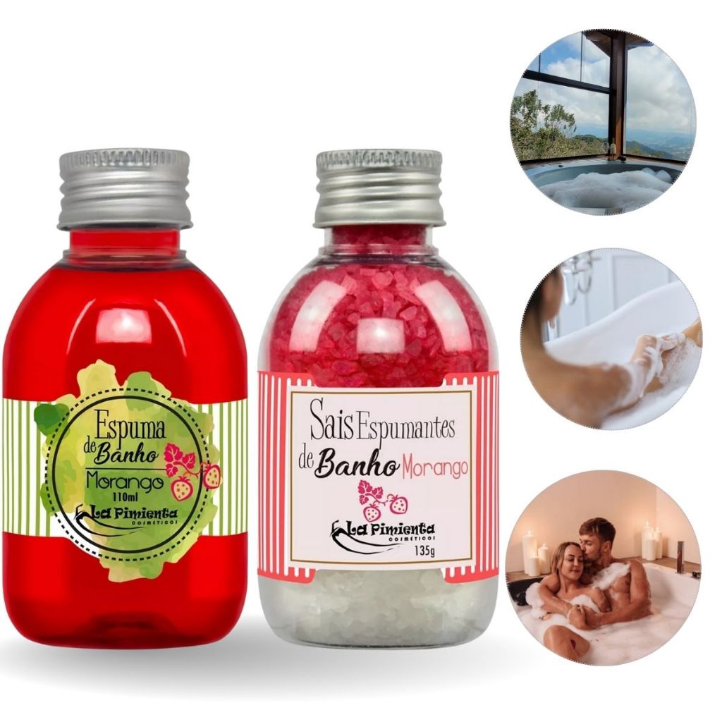 Kit perfeito para aquele momento em casal, ativando diversos estímulos como sensorial e olfativo. Os Sais de Banho são hidratantes fascinantes, formidáveis esfoliantes e belíssimas fragrâncias, feito e produzido com a mais alta qualidade La Pimenta desenvolvidos para serem utilizados em banheiras, com um delicioso sabor de morango usado em noites especiais, tirando o casal da rotina, deixando um ambiente mais propicio a sua fantasia mais secretas e um clima super prazeroso, eles trazem sensação de frescor, hidratação e perfuma a pele após o banho, deixando seu corpo mais charmoso. MODO DE USAR: Encher a banheira, despejar o produto e ligar a hidromassagem para causar o efeito de tratamento esfoliante. Escalda pés: Em uma Bacia com água morna coloque o sal conforme e relaxe com pés imersos, aproveite para criar um ambiente favorável, luz baixa, música e até mesmo uma massagem. No chuveiro: Usar na esponja com movimentos suaves, deixar em um recipiente no box do banheiro para que exale o aroma ou até mesmo colocá-los em saquinhos de tecido. ADVERTÊNCIA: Em caso de irritação da pele ou sintomas de alergia, suspender o uso e procurar um médico. Não aplicar o produto na área dos olhos. Manter fora do alcance das crianças. Transforme o seu banho em um momento de puro relaxamento e prazer com a Espuma de Banho La Pimenta. Feita para proporcionar uma experiência sensorial única, esta espuma combina limpeza, hidratação e um aroma envolvente que desperta os sentidos e promove bem-estar. Destaques da Espuma de Banho La Pimenta: • Espuma relaxante: Forma uma camada suave e cremosa que deixa a pele macia e revigorada; • Aroma marcante: Diversas fragrâncias que envolvem o ambiente e ativam os sentidos; • Prática e versátil: Perfeita para banhos relaxantes na banheira ou no chuveiro; • Sensação de frescor e cuidado: Hidrata e limpa a pele delicadamente, proporcionando um toque suave e sedutor. Como usar a Espuma de Banho La Pimenta? • Na banheira: Adicione a quantidade desejada do produto diretamente na água para criar uma espuma cremosa e relaxante. • No chuveiro: Aplique sobre o corpo delicadamente com o auxílio de uma esponja de banho, massageando suavemente. Ficha Técnica: • Contém: 01 Espuma de Banho Bath Foam La Pimenta; • Indicação: Todos os tipos de pele; • Fragrância: Moeango; • Validade: Presente na embalagem. Composição: Água, Lauril Sulfato de Sódio, Cloreto de Sódio, Glicerol, Dietanolamina Cocamida, Perfume, Corante, Metilcloroisotiazolinona/Metilisotiazolinona Cuidados e recomendações: • Uso externo; • Evite contato com os olhos; em caso de contato, enxágue com água em abundância; • Não ingerir; • Mantenha fora do alcance de crianças; • Armazene em local fresco e arejado, protegido da luz direta.