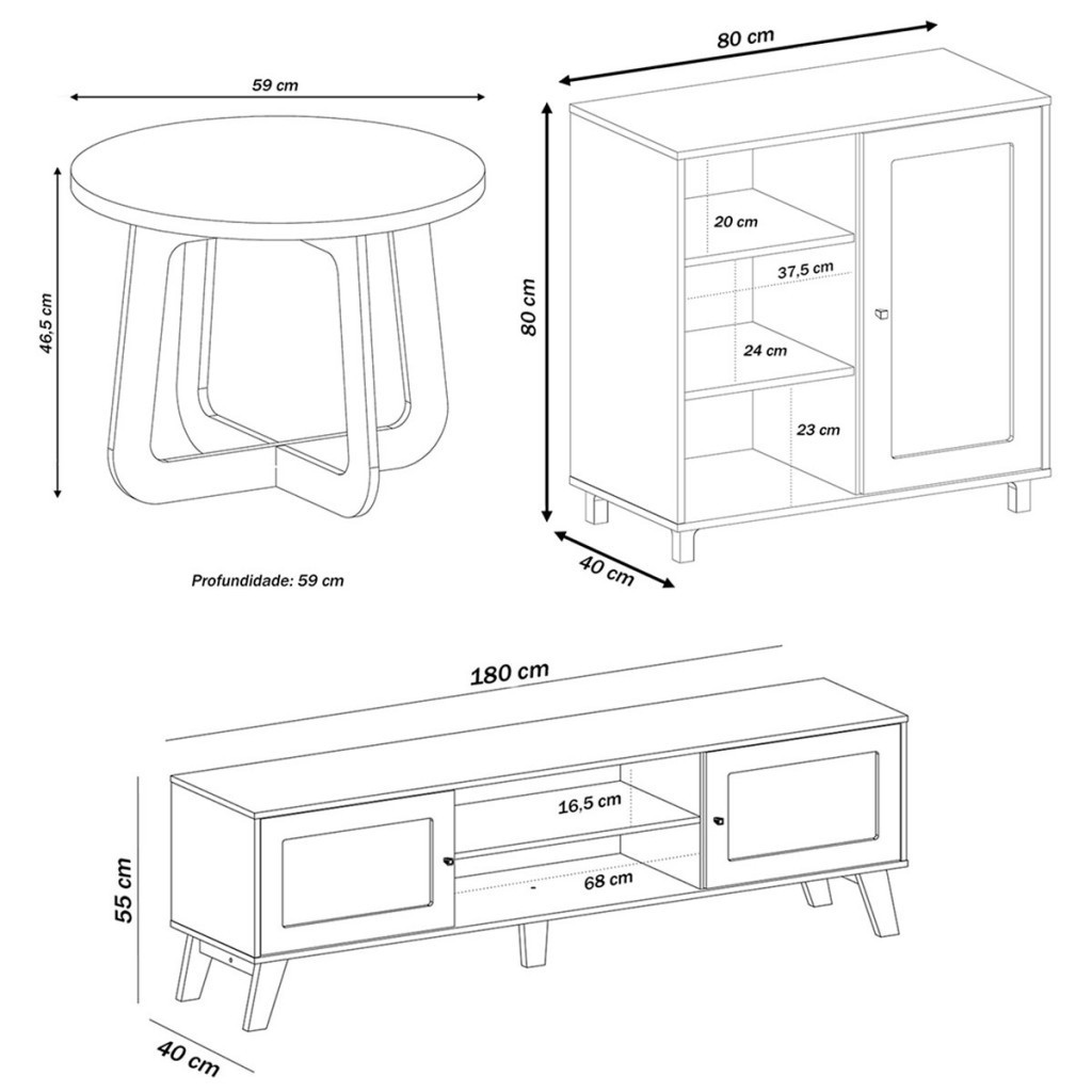 Sala de Estar Completa para TV até 75 Polegadas Charlotte 3 Portas