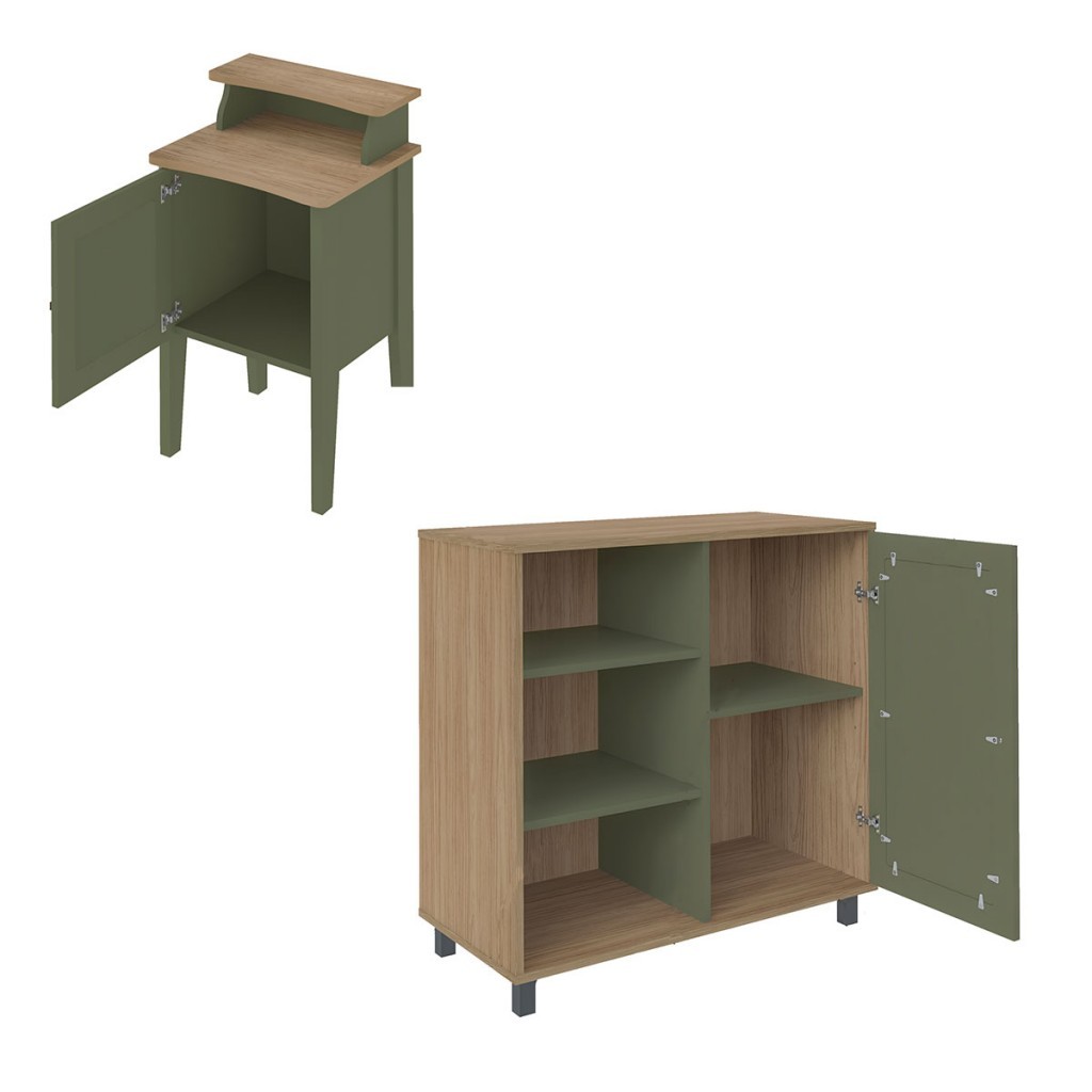 Sala de Estar Completa para TV Até 75 Polegadas Charlotte 4 Portas Carvalho/Menta - Pnr Móveis