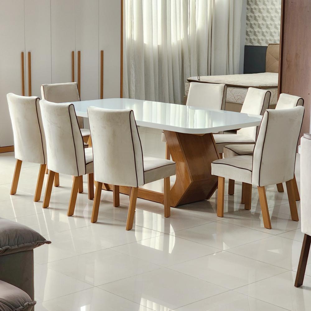Sala de Jantar 220x110 Lottus MDF/Vidro 8 Cadeiras Bom Pastor
