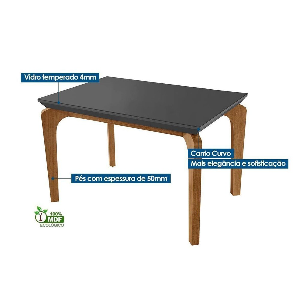 Sala de Jantar Completa Londrina c/ Tampo Madeirado Vidro Canto Curvo 120x80cm e 4 cadeiras Londrina Imbuia/Grafite - Linho Grafite - Rufato