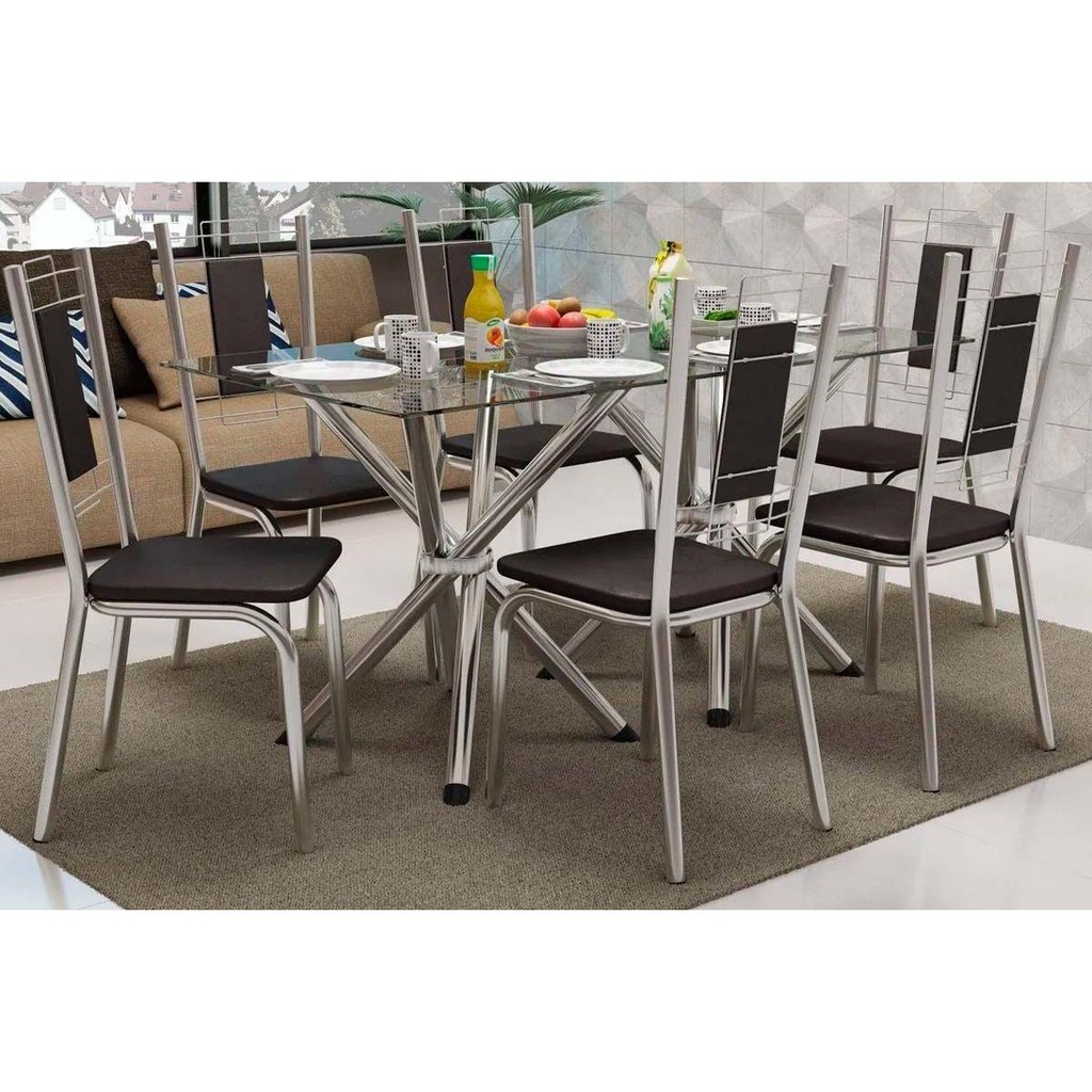 Sala de Jantar Completa Volga c/ Tampo de Vidro 150x80cm e 6 Cadeiras Florença Cromada - Preto - Kappesberg