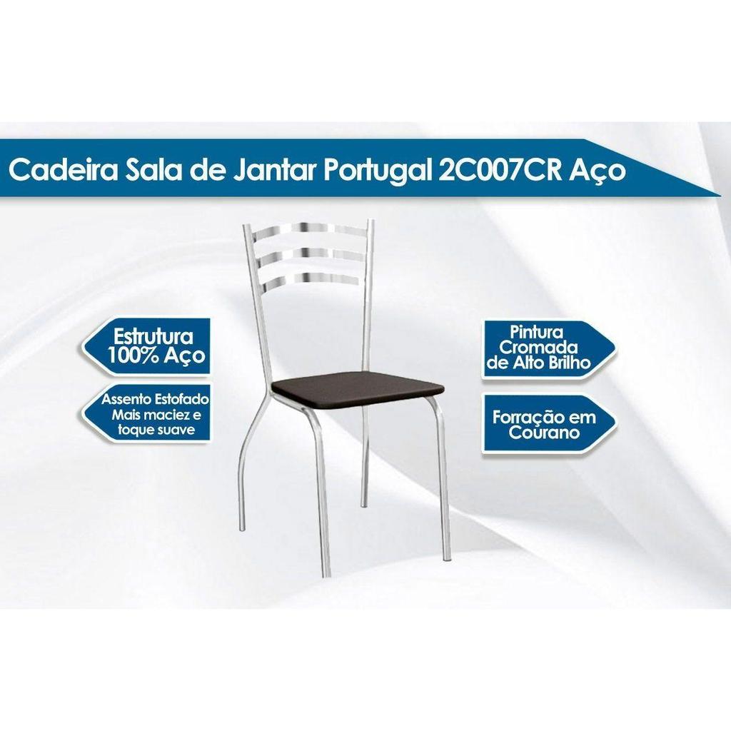 Sala de Jantar Completa Volga c/ Tampo de Vidro 95cm e 4 Cadeiras Portugal Cromada/Branco 106 - Kappesberg