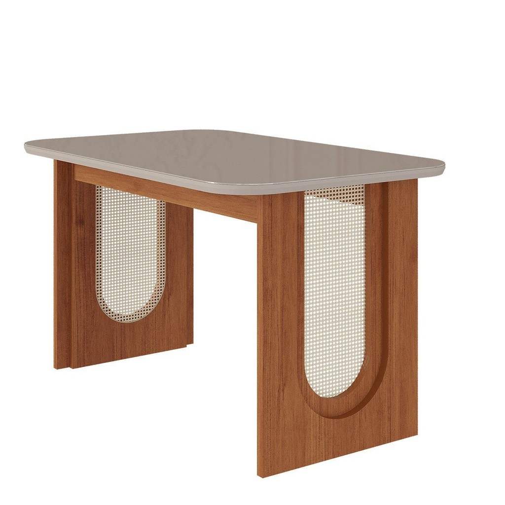 A base da Mesa Valentina é uma obra de arte por si só. Feita de MDF, proporciona estabilidade excepcional, enquanto o detalhe em tela sintética adiciona um elemento de textura e elegância. O tampo de vidro temperado confere um toque de modernidade e leveza. Além de ser visualmente impressionante, o vidro temperado oferece robustez e segurança. O assento e o encosto da cadeira são revestidos com estofamento de alta qualidade, proporcionando uma experiência de conforto excepcional. A inovação da Clarice também se estende ao seu sistema de facil montagem. Estilo: Moderno Formato: Retangular Garantia: 03 Meses Altura (cm): 76 Largura (cm): 80 Cor do Tampo: Bege Peso da Mesa: 48.82 Possui Vidro: Sim Cor Secundária: Bege Mesa Extensível: Não Profundidade (cm): 130 Tipo de Encosto: Estofado Escala de Brilho: Semi-Brilho Formato do Tampo: Retangular Mesa Suporta Até: 40 Serviço Montagem: 114259443 Material do Tampo: Vidro/MDF Origem do Produto: Nacional Acabamento da Mesa: Pintura UV Ambiente Principal: Sala de Jantar Espessura do Tampo (mm): 29 Material Principal: MDF Almofada do Assento: Fixa De Canto (Canto Alemão): Não Enchimento do Assento: Espuma D-20 Enchimento do Encosto: Espuma Peso da Cadeira/Banco: 9 Quantidade de Lugares: 4 Cadeira/Banco Estofada: Encosto e Assento Estofados Quantidade de Cadeiras: 4 Material da Base da Mesa: MDF Possui Apoio para os Pés: Não Possui Suporte Giratório: Não Cadeira/Banco Suporta Até: 100 Acabamento da Cadeira/Banco: Verniz Revestimento da Cadeira/Banco: Suede Acompanha Manual de Instalação: Sim Material da Estrutura da Cadeira: Madeira Marca: Cimol Cor do Produto: Cinamomo/Offwhite/Nude Itens Inclusos: 1 Mesa, 4 Cadeiras, Kit de ferragens e Manual de montagem Cor Predominante: Marrom Medida da Mesa (A x L x P): 76cm x 80cm x 130cm Medida do Tampo (L x C x E): 80 x 130 x 2,9 Medida da Cadeira/Banco (A x L x P): 99cm x 46cm x 57cm